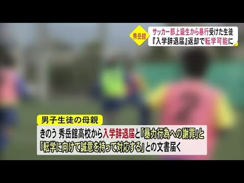 この生徒の母親によりますと、今年3月、秀岳館高校サッカー部に入部予定だった当時中学3年の男子生徒が寮の食堂で、上級生から暴行を受けるなどしたため4月の入学式前に入学を辞退したということです。