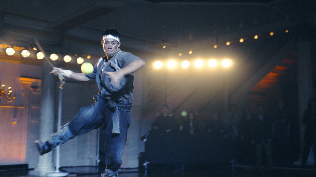 撮影では、錦織選手が実際に木刀でテニスボールを打ち、細い木刀にもかかわらずバックハンド、フォアハンド、サーブなどを次々と成功させたという。
