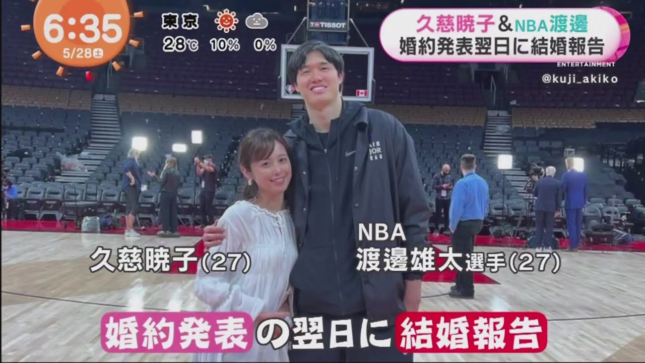 久慈暁子&NBA渡邊 婚約発表翌日に結婚報告 めざましどようび 2022年5月28日