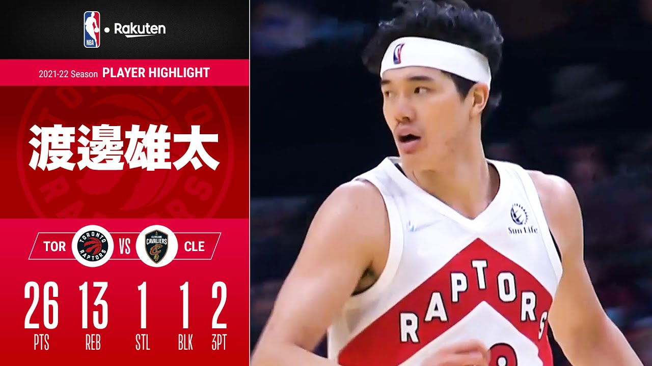 日本時間12月27日、ラプターズの渡邊雄太がキャバリアーズ戦でキャリア5度目の先発出場! 試合には敗れるも、主力が多数不在のなか26点・13リバウンド(ともに自己最多)と躍動!