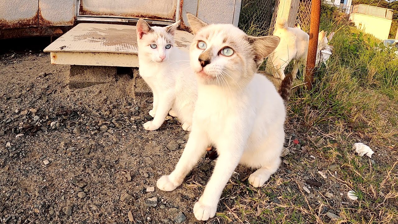 シヤム兄弟野良ねこちやん仲良しで可愛いです。ひとなつこくて癒やされますね。