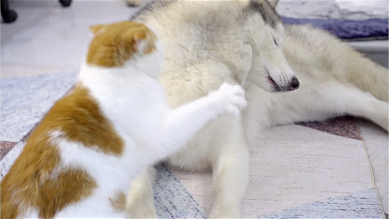 ハスキー犬は暑がりだから体温の高い猫ちゃんにくっつかれるのは苦手なはずだけど、ボビイ君は愛情と優しさが勝って何でも許しちゃうんだろうなぁ🍀