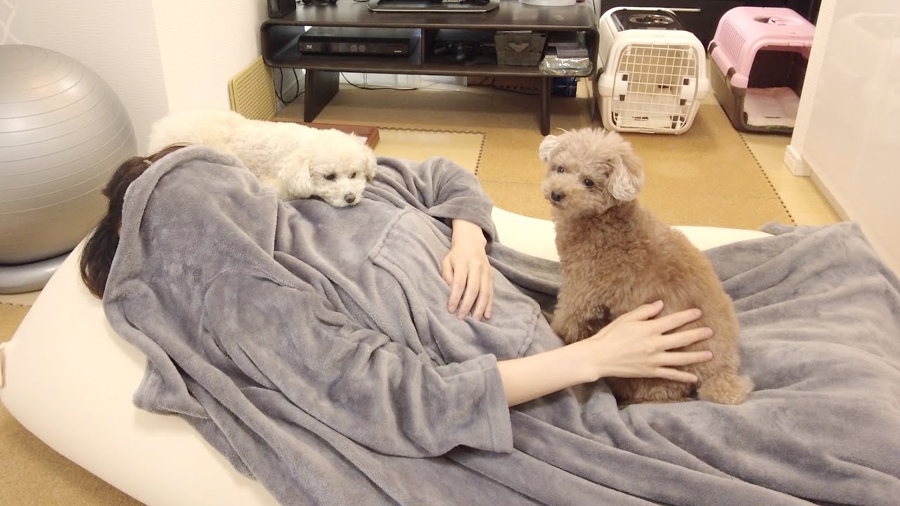虎太郎と三桜の目の前でYogiboを使ってお昼寝をしようとするとこうなりますw