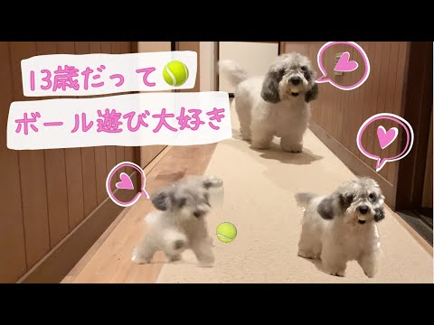 今回は、13歳のシニア犬ぽちがボール遊びをする様子です。