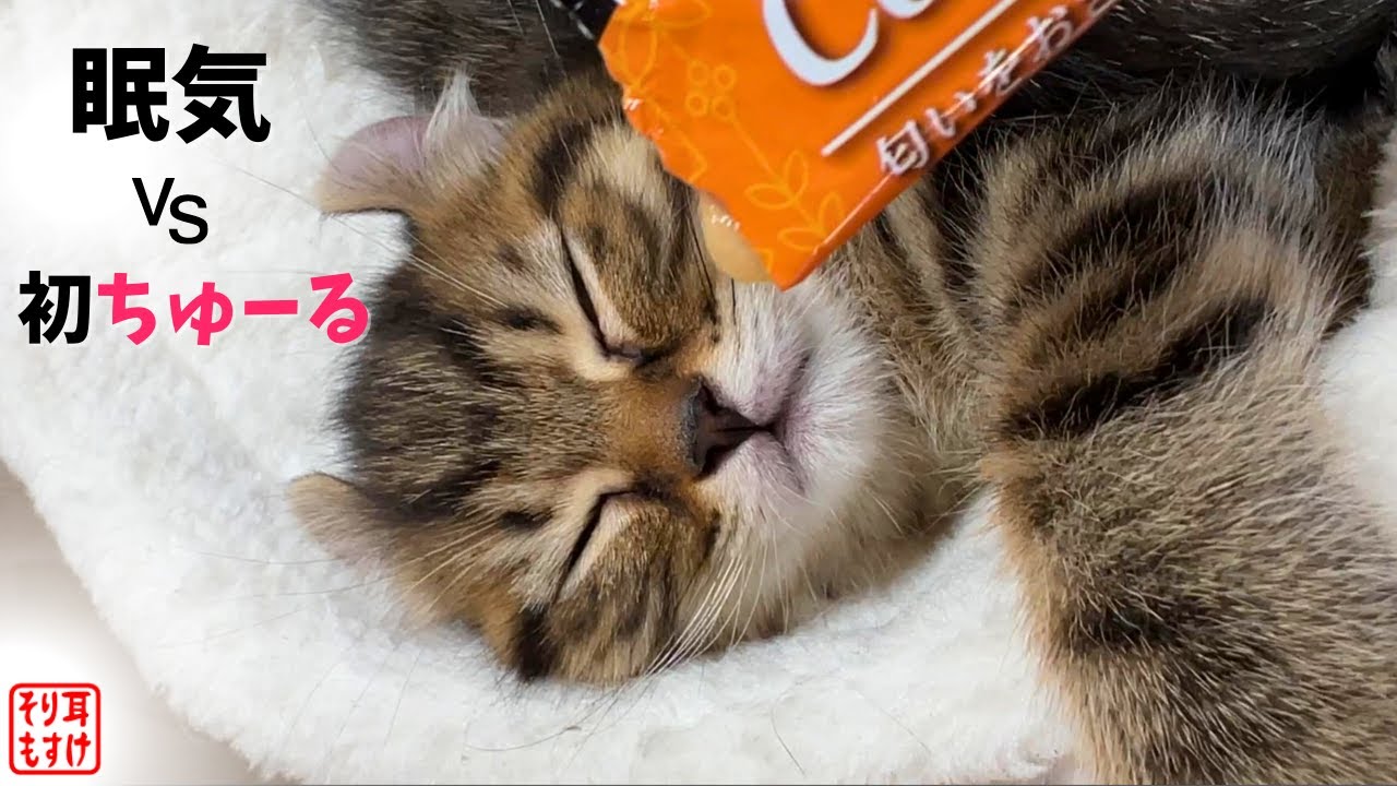 昼寝中、寝ぼけた子猫に初体験の「ちゅ~る」あげてみた
