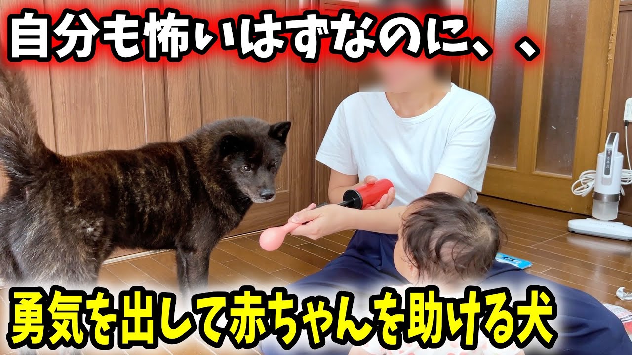 「風船🎈は恐い!が、みーちゃんを守らなきゃ!泣いている😭慰めなきゃ!」という雰囲気の一休さん🐕💕優しいお兄さんですね💕