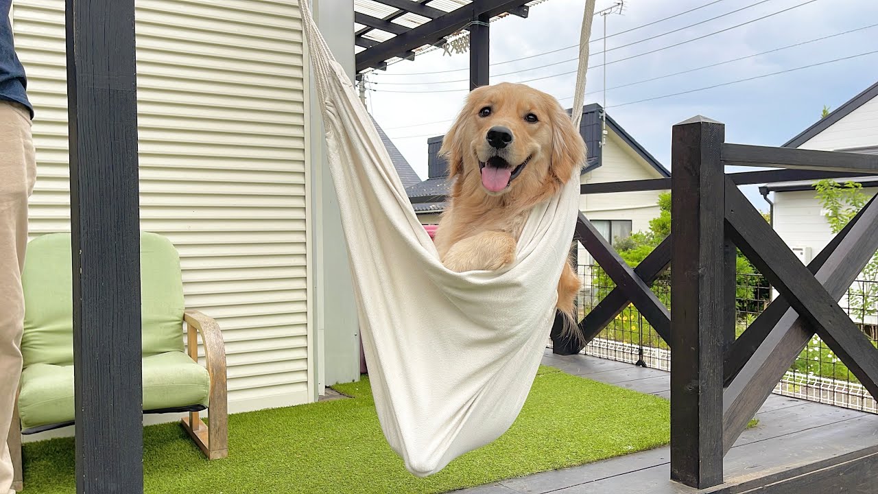 ハンモックを楽しむゴールデンなんて初めて見ました😉