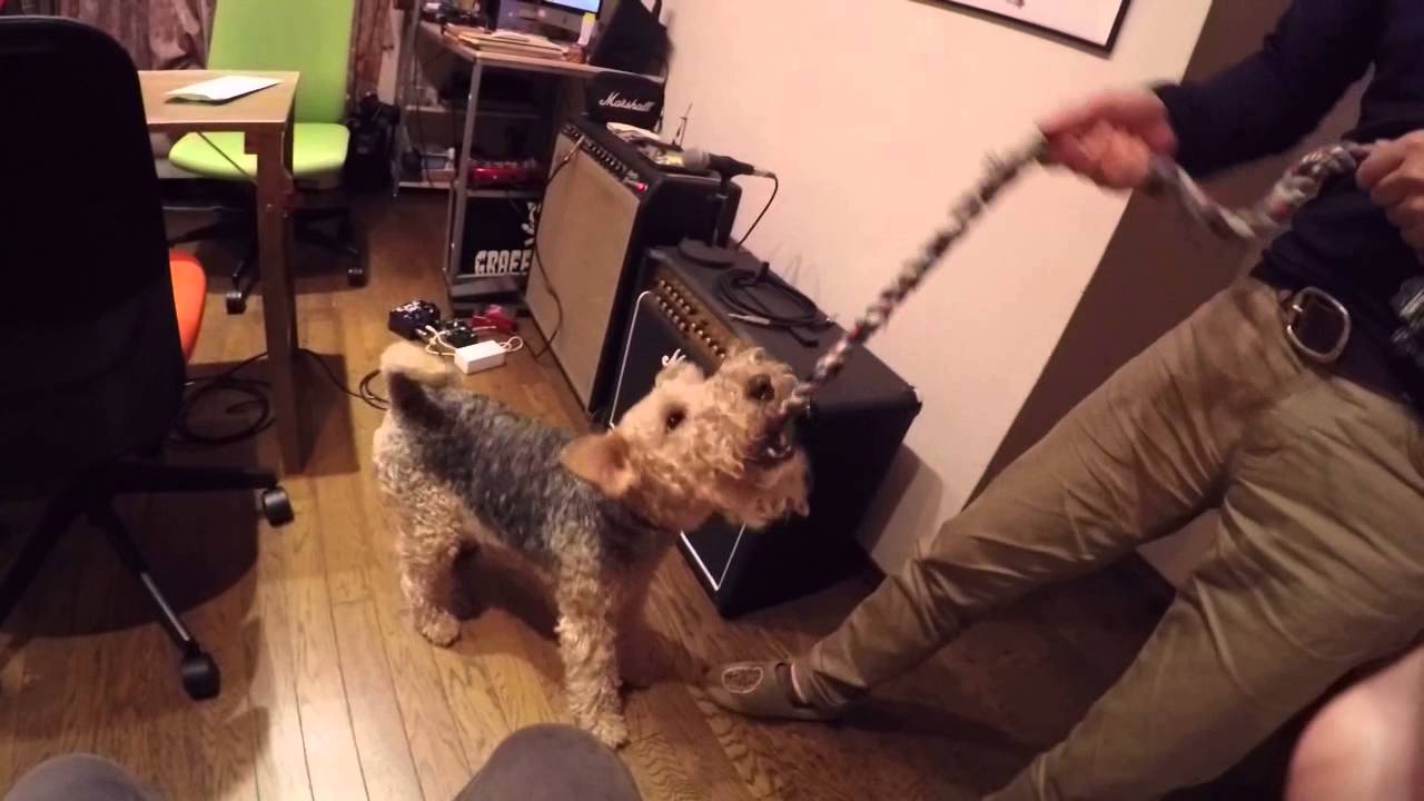ロープで遊ぶウェルシュテリア