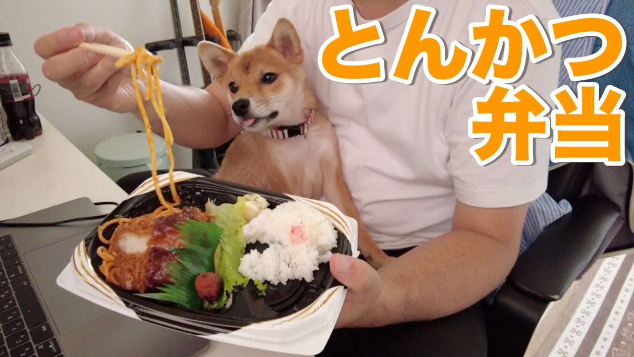 小夏ちゃん🐶トンカツ弁当🍱食べたいよねー😊みてる私も食べたい😅ペロペロ😋