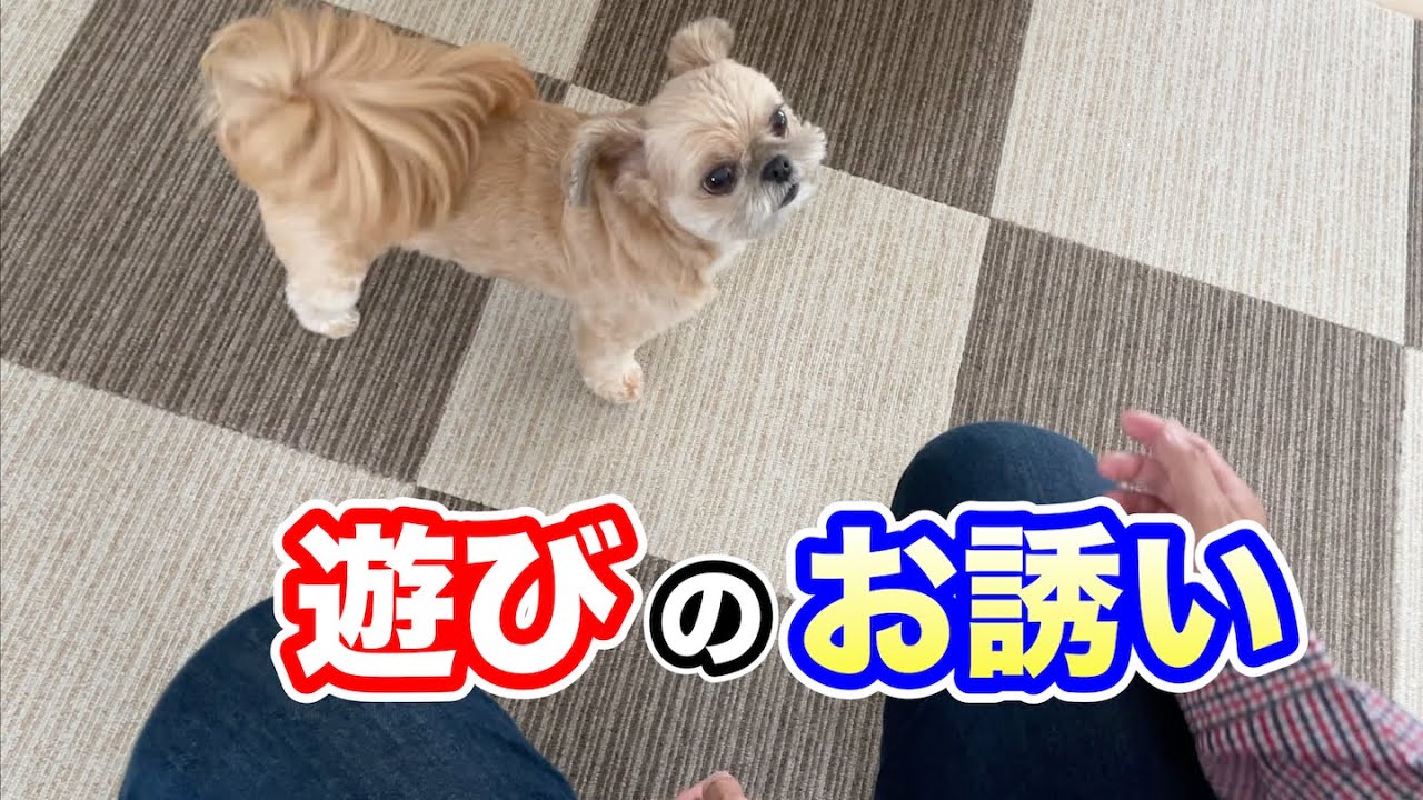 豆三郎と遊びたくてお父さんを誘う犬 チワワ×シーズー