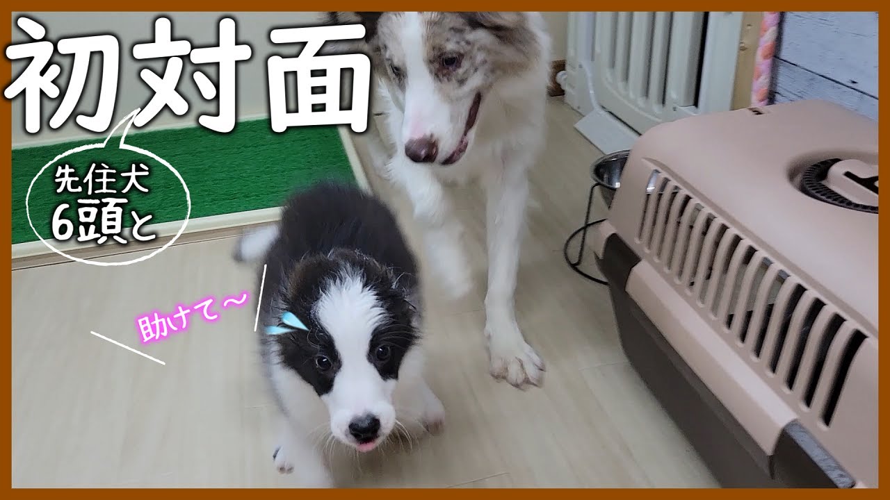 さくら(3ヶ月)が先住犬6頭と初対面した時の様子です♪