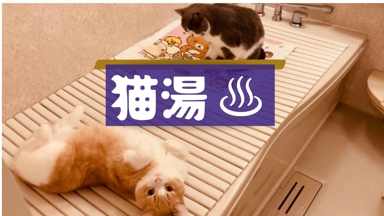 湯船に浸かりながら、まったりくつろぐ猫を眺める、癒しのお風呂タイムです。