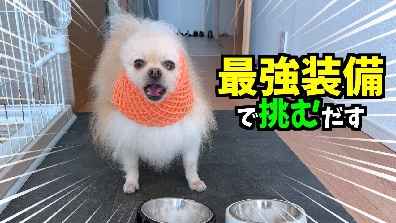 ポメ吉君メロンの袋被ってるの?最強面白いね😊