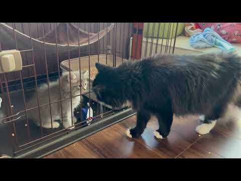 梅ちゃん戸惑っていますね。サイベリアンのクウちゃんはおとなしくてかわいいですね🐱 クウちゃんと仲良くなって寂しさが和らいでいくといいですね🐾