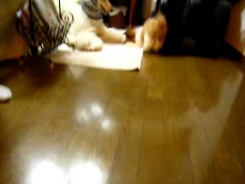 パピーに負けたアフガンハウンド