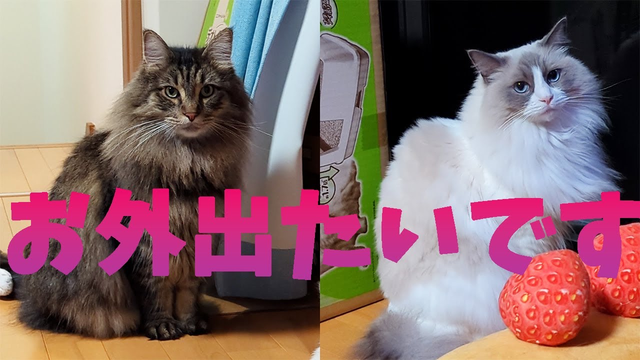 メインクーンのはっさく君とラグドールのすももちゃん、サイベリアンのあんずちゃん3匹の成長記録の動画です。