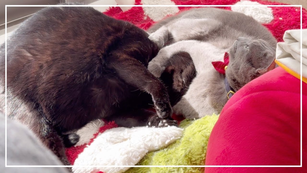 サイベリアンのルナと保護猫で黒猫のすずと保護猫でロシアンブルーのノアの癒し動画です。