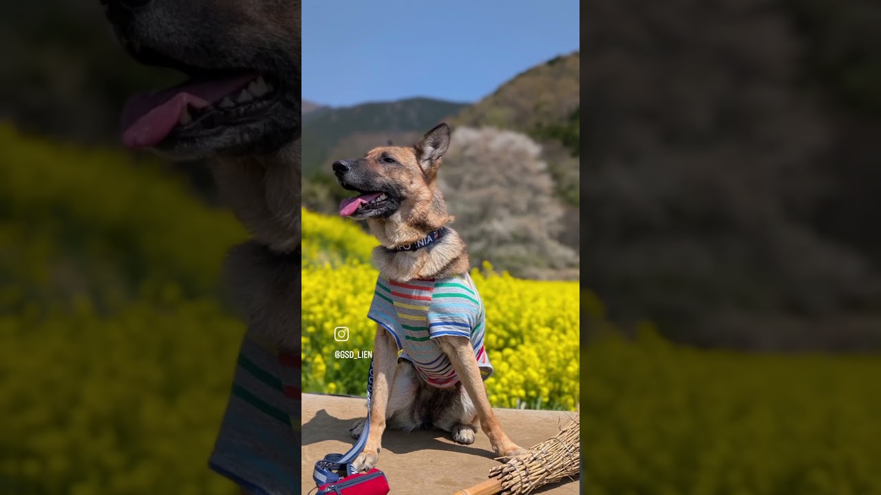 2025 4 #散歩 #ジャーマンシェパード #桜 #一本桜 #淡墨桜 #菜の花 #大型犬と旅行 #大型犬のいる生活