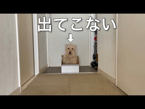わんわんがダンボールから出てこないw