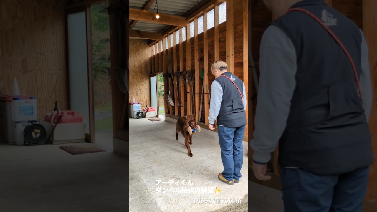 アーディくん(アイリッシュセター)ダンベル持来の練習