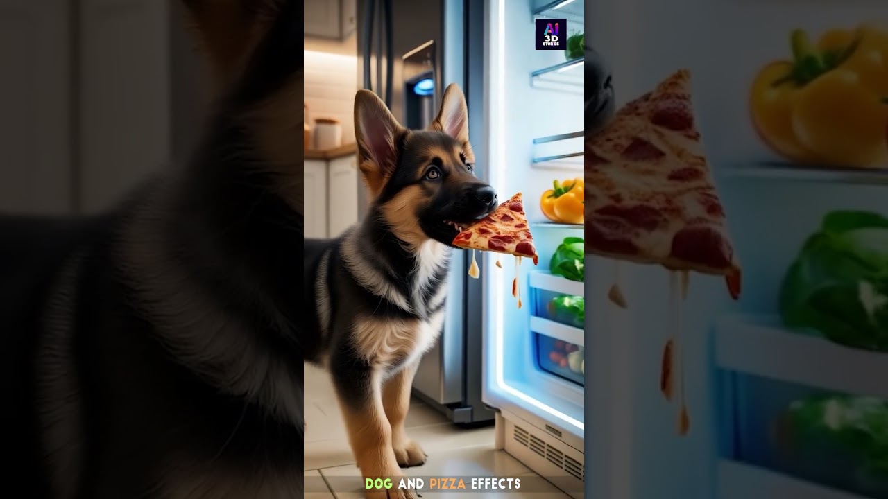 ๐พ You wonโt believe what this adorable German Shepherd puppy did! In this ultra-realistic 8K cinematic render, our fluffy little friend gets caught red-pawed mid-heist โ stealing a slice of pizza straight from the fridge! ๐โจ