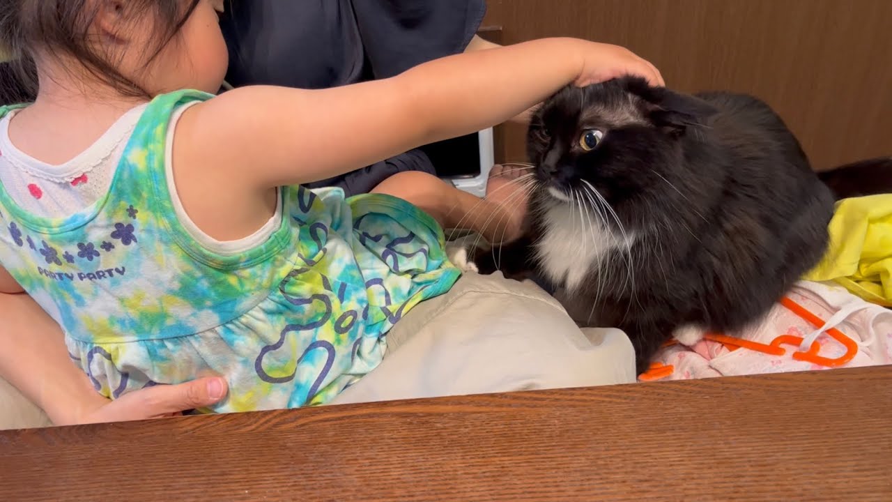 ママの膝の上が一番だにゃ〜😼