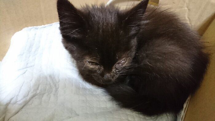 紹介するのは、X(旧Twitter)ユーザー@touzainosaito3さんが投稿していた、こちらの写真。小さく体を丸めている愛猫・クロくん(撮影時、生後推定1カ月)が写っています。