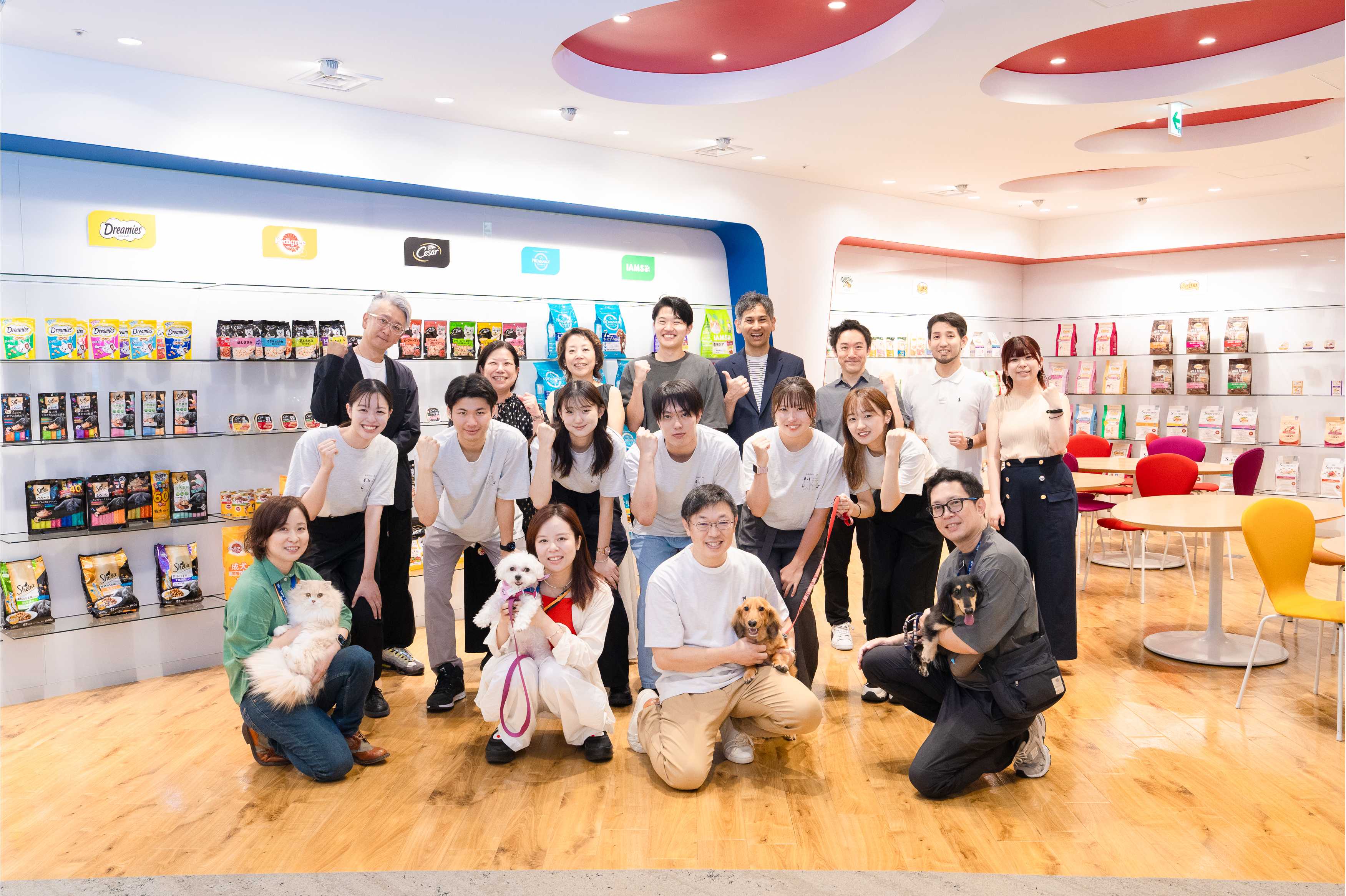 チームの中にはすでにペットと生活をしていて犬や猫が大好きな学生や、ペットとの触れ合いの機会もなく、苦手意識のある学生も含まれる構成で、プロジェクトはお互いの考え方の違いを理解することからスタートしました。また、最終提案当日は、会場となったマース ジャパンのオフィスに同伴出勤していた犬や猫との触れ合いの機会もあり、実際の触れ合いによって、ペットとの距離感の変化を学生の皆さん自身が経験するきっかけにもなりました。