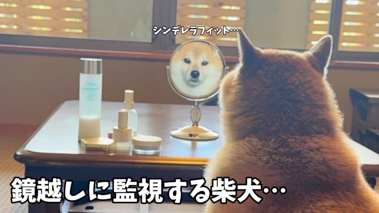 おもちくん鏡越しに見てる🤣🤣