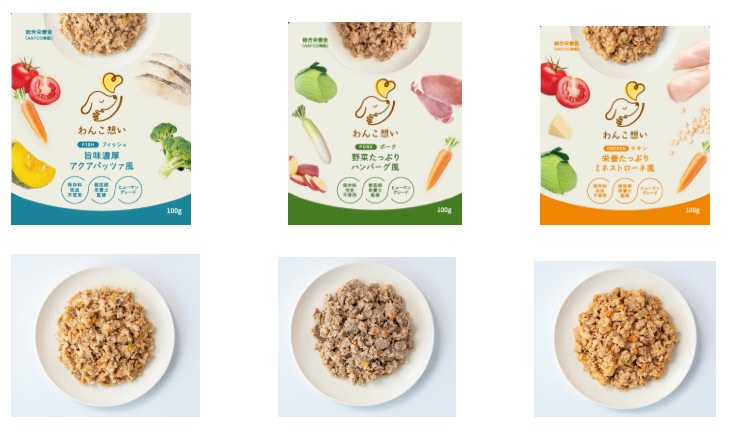 今回発売するのは、レトルトタイプのウェットフードだ。人間用の食材を使用し、FSSC22000の認定工場で、酸化防止剤や防腐剤を使用せずに製造しているという。
