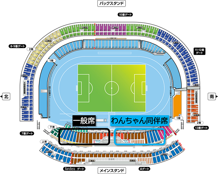 ・「わんちゃん同伴専用エリア」以外のスタジアムエリアには、ペットを連れての立ち入りはできません。