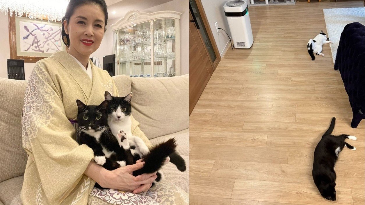 【写真を見る】【 藤あや子 】愛猫オレオが “ヘソ天ぱぁ” 「床暖つきました」で猫たち安心の秋冬へ