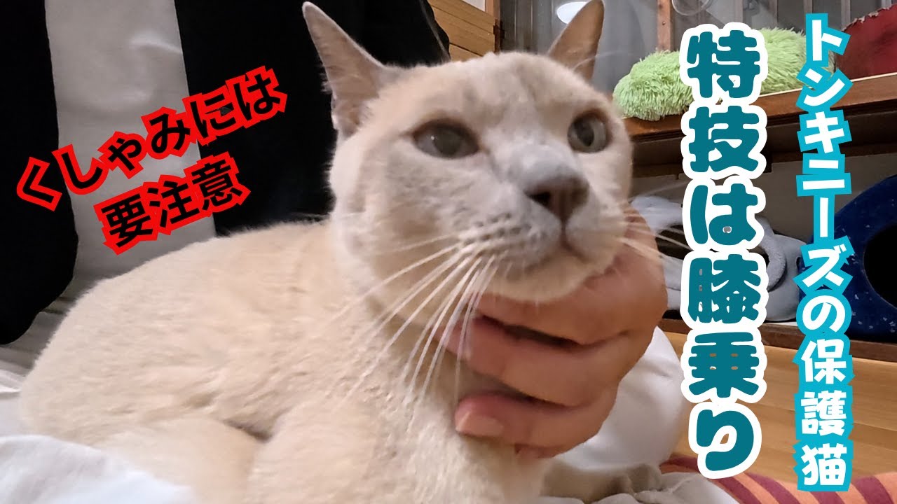 大阪地下鉄中崎町駅にある保護猫カフェキャットスペースさんにいるトンキニーズのトニー君は5歳〜10歳ぐらいの男の子です