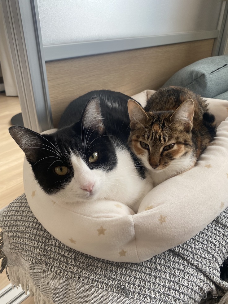 夫婦と猫2匹(ランとムク)の家族です。