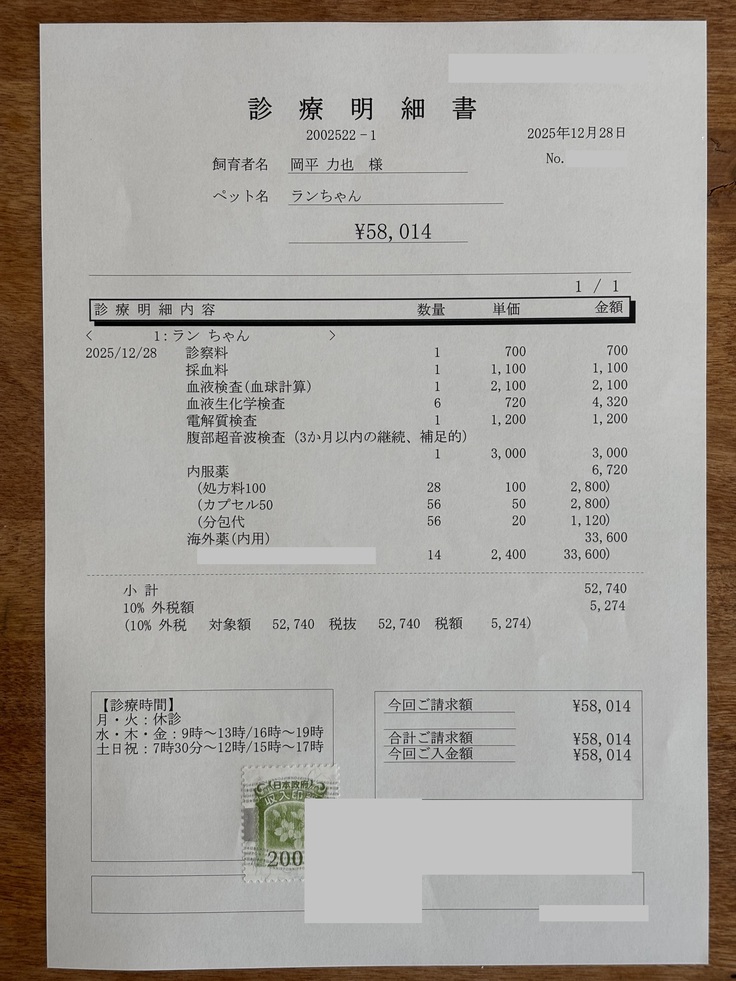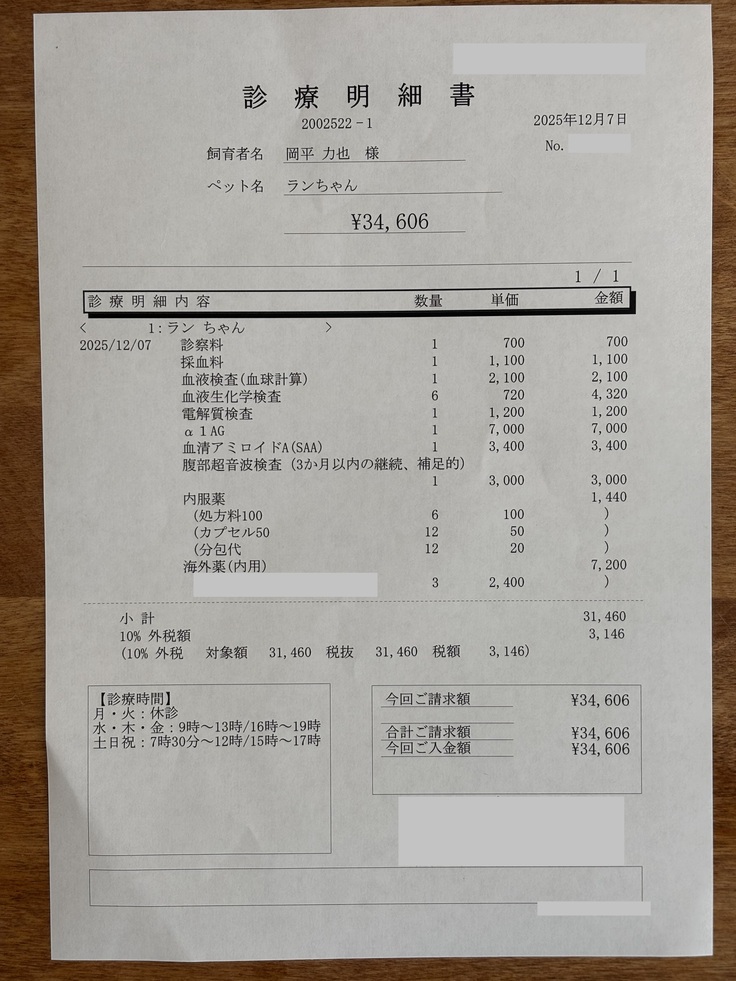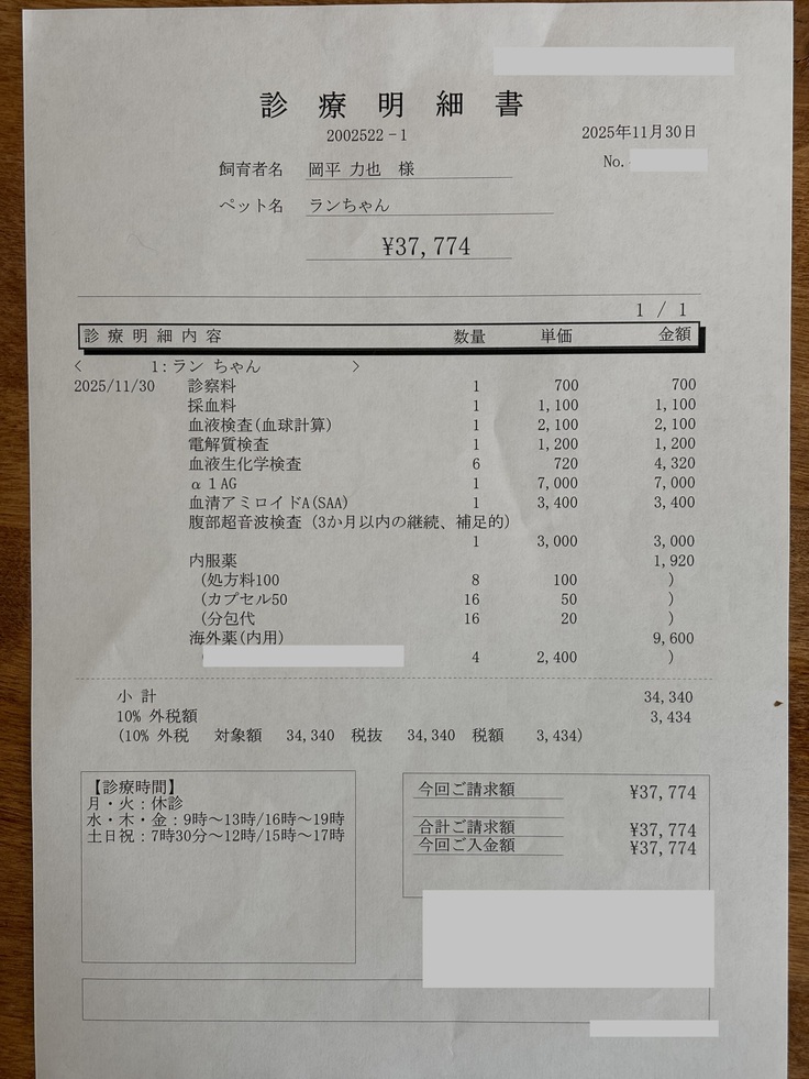 以下、FIP診断後の診療明細書になります。