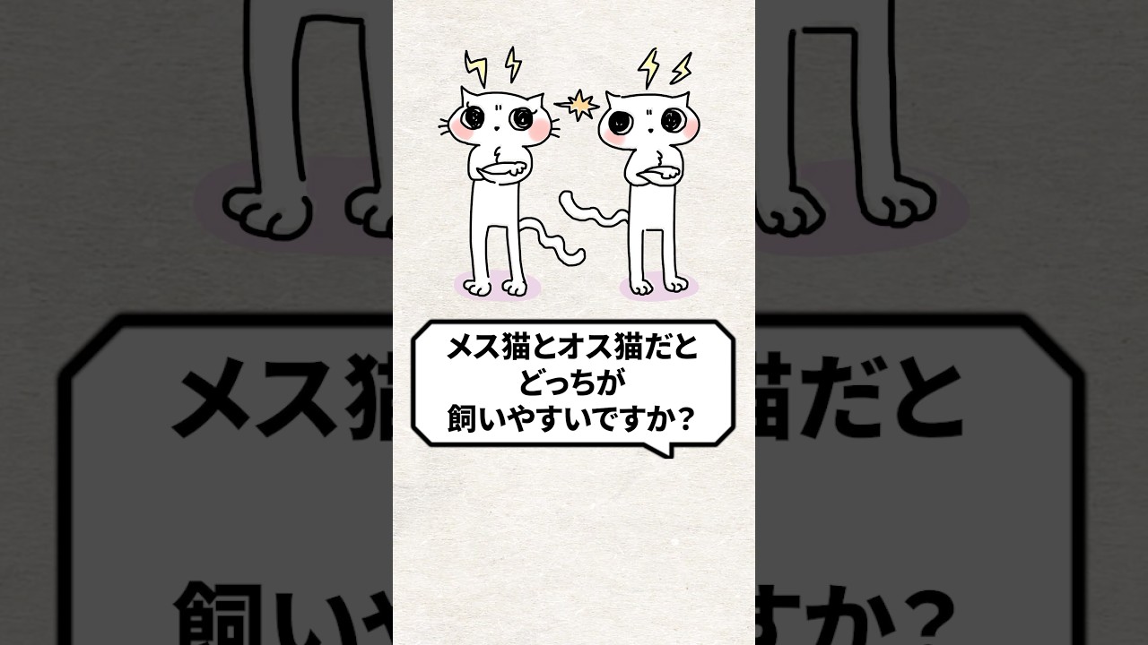 @チョコケーキ-n5u 6日 ago うちのクリーム茶トラメスは神経質で甘噛みが多いけど、言葉の理解やドアを開けるのは得意。キジ白オスは素直で甘えん坊だけど、毛繕いは人間まかせで自由人。お留守番多いならメスがいいし、人間が寂しくてお迎えするならオスがいいと思う😊