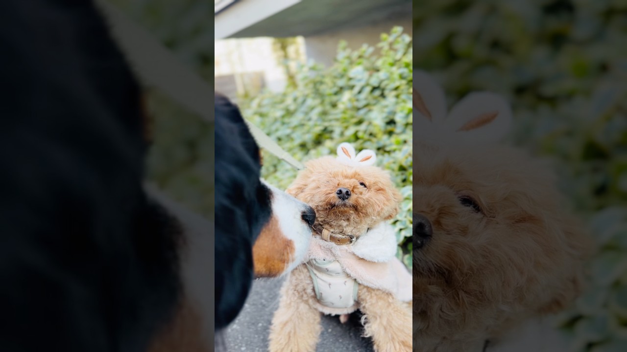 ママさんがプレゼントしたウサギ🐰の耳、めちゃトイプーちゃんに似合ってます😊❤