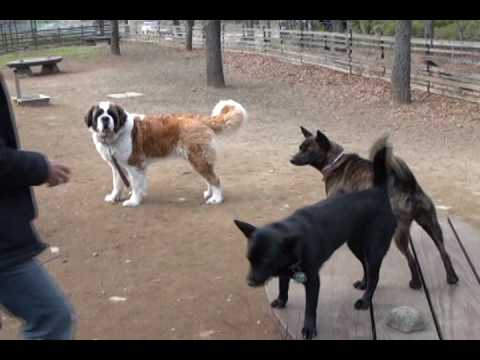 3. バーナードさん、甲斐犬軍団に押され気味だけど、仲良くなれたかな~😆