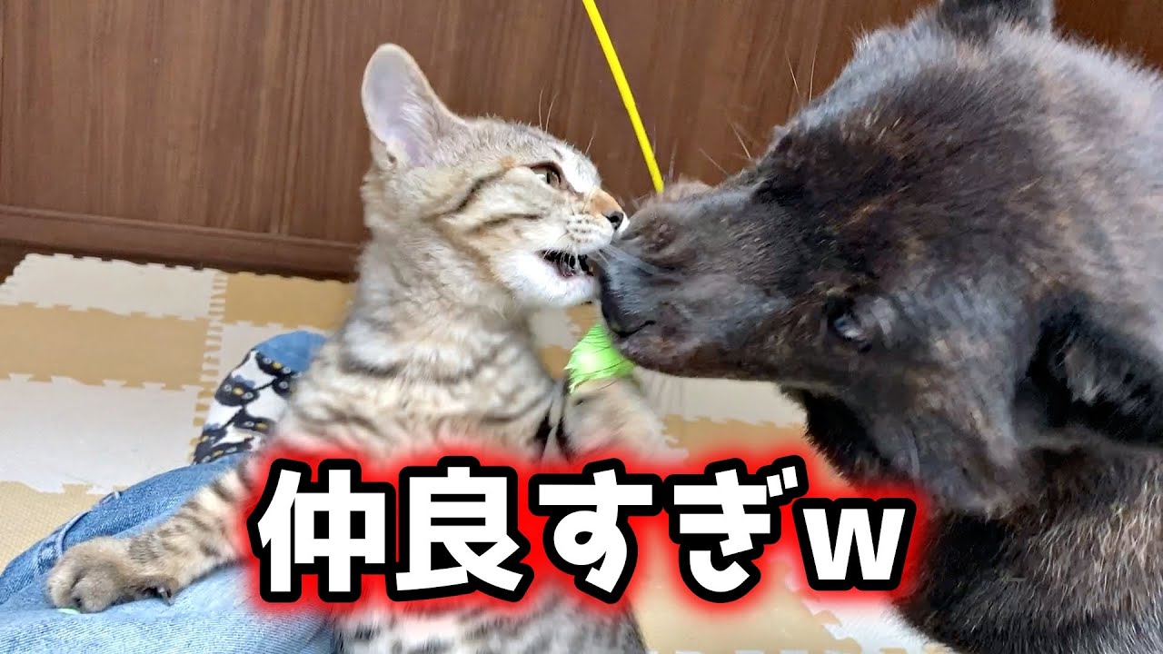 ねこじゃらしって偉大😆一休さんもしずくさんも楽しそうで見てて癒やされました💗
