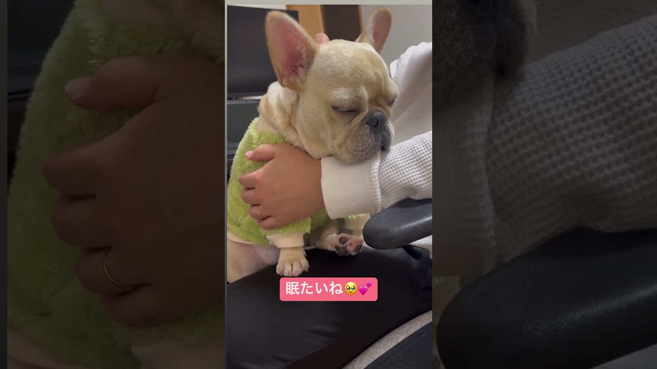 「眠さが限界突破したフレンチブルドッグの様子がこちら」
