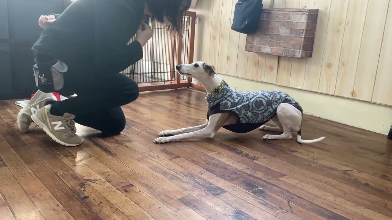 ウィペットの”マキちゃん”と“クロール(ほふく前進)”にチャレンジしました!
