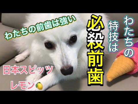 ワンコはオオカミの親戚だから前歯は強いよね。