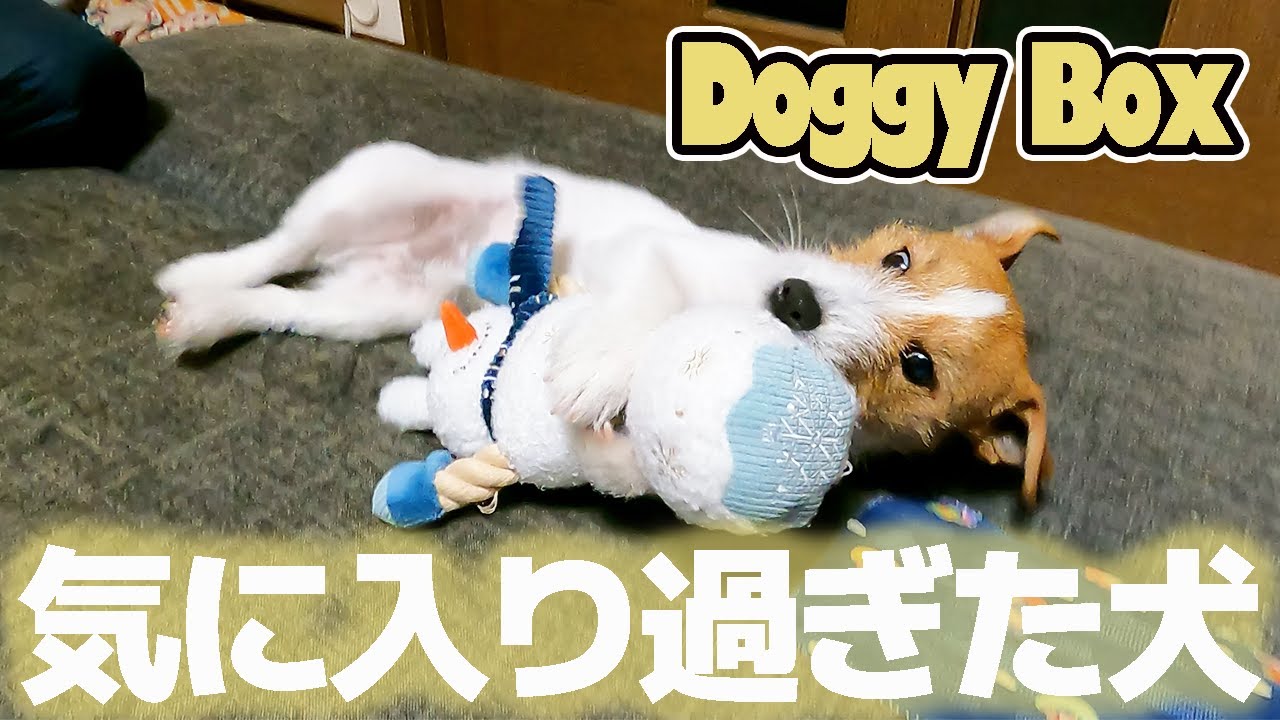ぶち君ドギボいいね😊オヤツも入っててオモチャも入ってて最高だよね😊雪だるまのおもちゃ仰向けで抱っこしてピコピコ超カワイイ🥰ワンコはピコピコ音がするおもちゃ好きですよね😊