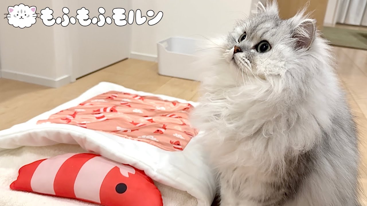 可愛いお布団ですね。いつものエビを一生懸命取ろうとしても取れない💦モルンさんのひとつひとつの動きが可愛いくて笑ってしまいます❤