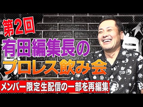 今回は特別回!YouTubeメンバー限定新コンテンツ『有田編集長のプロレス飲み会』第2回生配信の一部を再編集して、期間限定で特別にお届け致します!第2回生配信では、他にもたくさんのテーマやエピソードをおしゃべり致しましたが、今回の動画はそのほんの一部のみとなります。