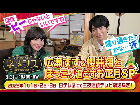 『映画 ネメシス 黄金螺旋の謎』の公開に先駆けて、2023年1月1日(日)~3日(火)に日本テレビ系列 にて<広瀬すず&櫻井翔とほっこり過ごすお正月SP 3夜連続『ネメシス』上映会>の放送が決定!!