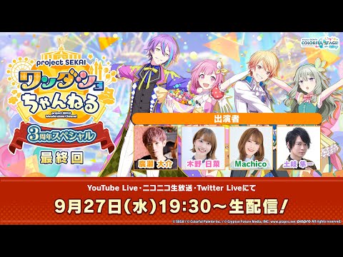2023年9月27日(水)19時30分より「プロジェクトセカイ ワンダショちゃんねる 3周年スペシャル」を実施いたします。