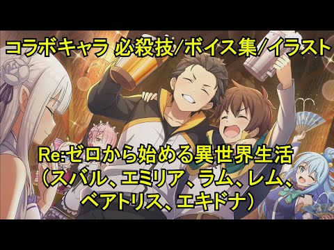 リゼロのコラボキャラ:スバル、エミリア、ラム、レム、ベアトリス、エキドナ の必殺技/ボイス集/イラストの動画です。 再利用したい場合に備えて、ボイス集の部分にはBGMを付けていません。