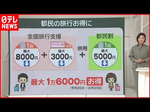 「それに加えて、1泊あたりの宿泊費が最大5000円割り引きになる『都民割』も併用できることが7日、正式に決まりました。12月20日まで、最大1万6000円お得になります」