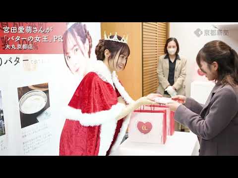 タレントで作家の宮田愛萌(まなも)さん(26歳)が2025年1月24日、京都市下京区の大丸京都店で、自身がアンバサダーを務める菓子「バターの女王」のPR「お渡し会」を行った。宮田さんはインターネットで事前予約した購入者一人ずつに商品を手渡した。